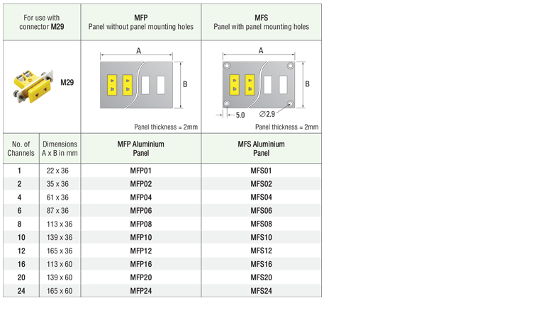 MFP / MFS - Anodised Aluminium Panels - For use with Flanged Micro Connectors![]() |