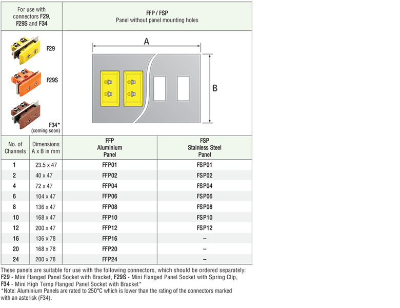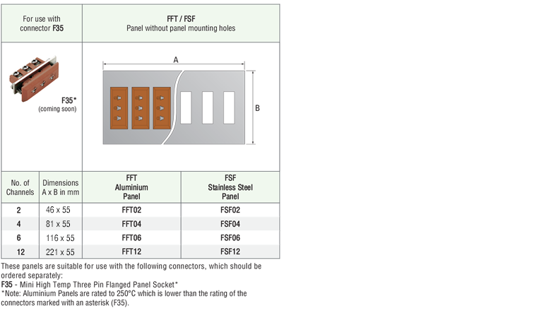 FCT / FST - Anodised Aluminium and Stainless Steel Panels - For use with 3 Pin Mini Panel Connectors![]() |